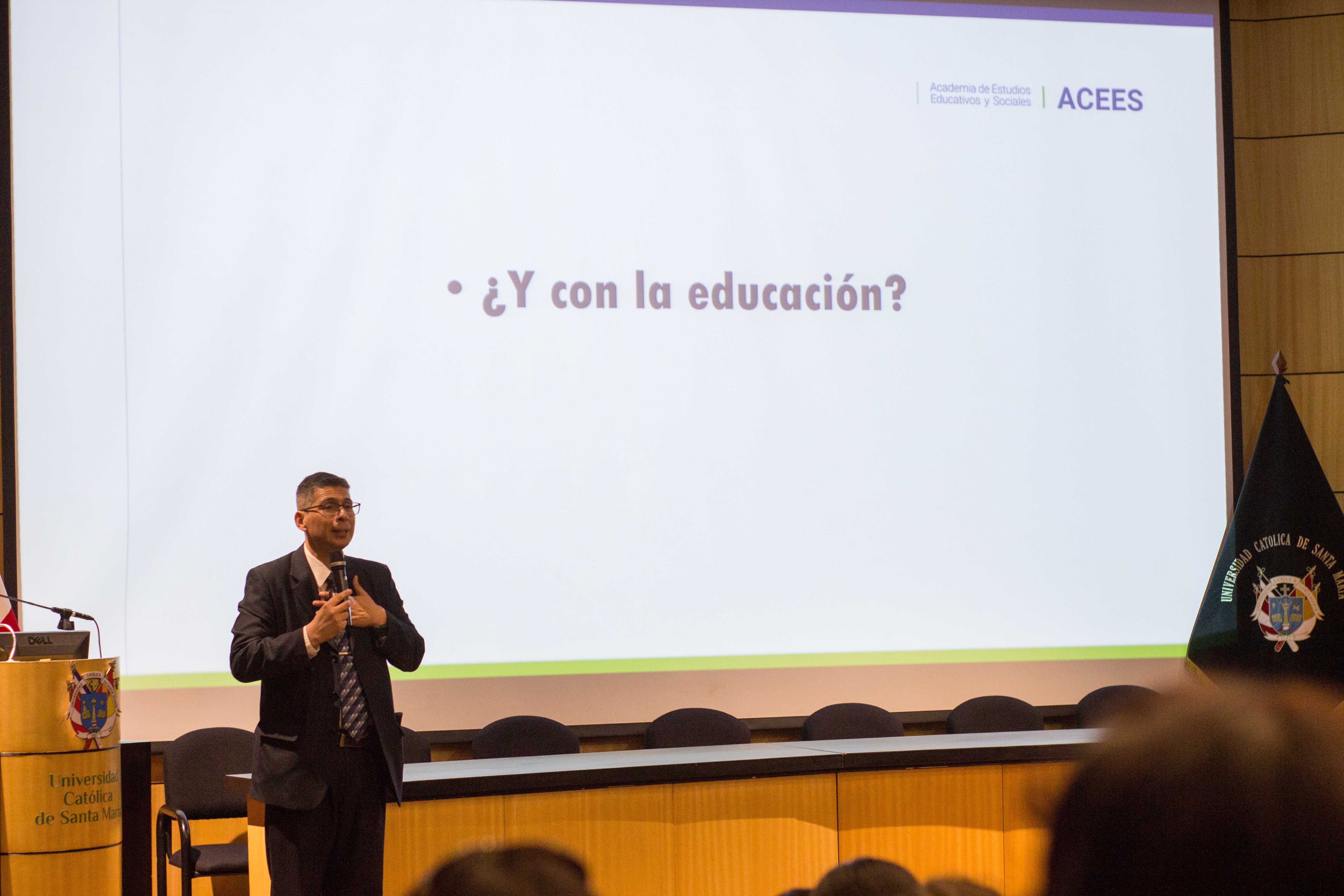 El 27 de noviembre del 2019 presente año se dio inicio, en las instalaciones de la Universidad Católica Santa María, el Seminario - Taller Internacional: "Proyectos de Aprendizaje y Evaluación Formativa en el marco del Currículo Nacional" dirigido a maestros de primaria y directivos de las instituciones educativas de la UGEL Arequipa Norte. Este es un esfuerzo de la UGEL Norte de Arequipa y ACEES (organización de capacitación para graduados) que congregó a 250 participantes en torno a conferencias centrales y talleres especializados. Este evento se inició con dos ponencias magistrales. La primera de ellas se tituló “¿Cómo aprender de las experiencias educativas internacionales?" y estuvo a cargo del Dr. Iván Montes Iturrizaga; investigador, consultor internacional y catedrático, quien, además, es Director General de ACEES. La segunda conferencia titulada “Educa con tecnología antes que la tecnología te eduque a ti” fue impartida por el Dr. Lluís Vicent i Safont (España); connotado investigador, asesor y líder de la educación a distancia en el ámbito internacional. Adicionalmente, cabe señalar que el Dr. Vicent es canciller (fundador) de la Universidad Europea que se ubica en Andorra (Europa).